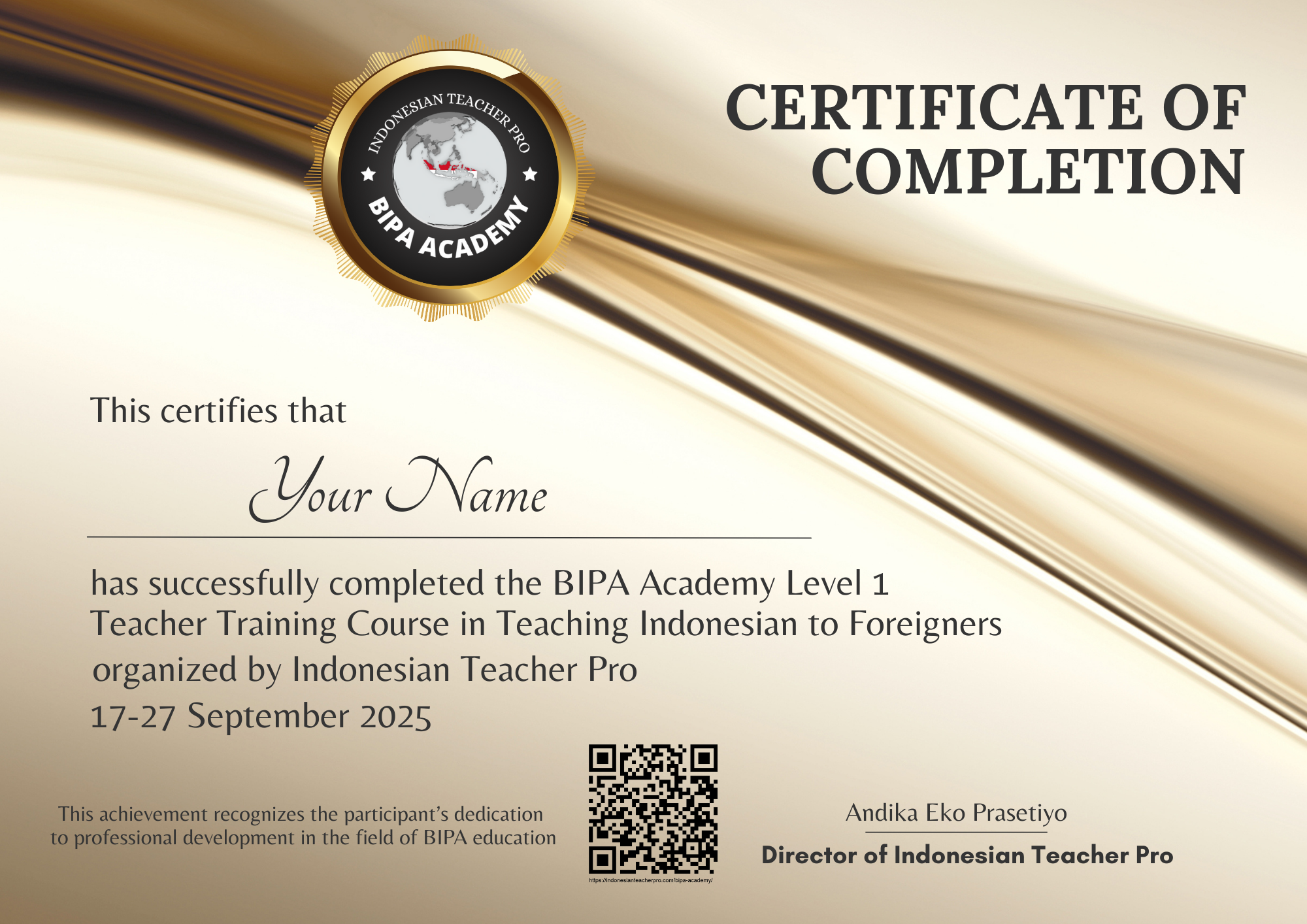 Participants will receive an official certificate from Indonesian Teacher Pro upon successful completion of the program and final teaching practicum.